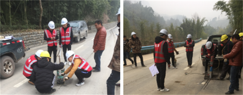 1月25日,寶興縣公路養(yǎng)護(hù)段組織第三方試驗(yàn)檢測(cè)機(jī)構(gòu)對(duì)路橋公司承建的“羅家村一、四、七組通組公路改(擴(kuò))建工程(K0+000~K0+800段)路面鋪筑及沿線邊溝、 交安工程”進(jìn)行交工驗(yàn)收外業(yè)檢測(cè)。寶興縣發(fā)改局、紀(jì)檢組以及參建監(jiān)理、設(shè)計(jì)、施工單位代表一同前往該項(xiàng)目現(xiàn)場(chǎng)進(jìn)行交工驗(yàn)收。