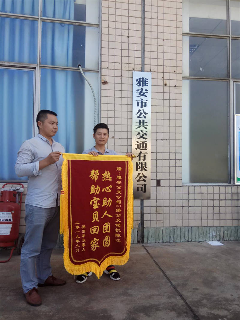 正是由于陳達(dá)細(xì)致耐心的服務(wù)和面對(duì)突發(fā)事件的沉穩(wěn)冷靜,避免了該起兒童走失事件發(fā)展成更大的悲劇,挽救 了一個(gè)家庭。9月20日,為了表達(dá)感激之情,男童的父親吳治華來到公交公司將一面寫有“熱心助人團(tuán)圓,幫助寶貝回家”的錦旗送到了陳達(dá)手上。