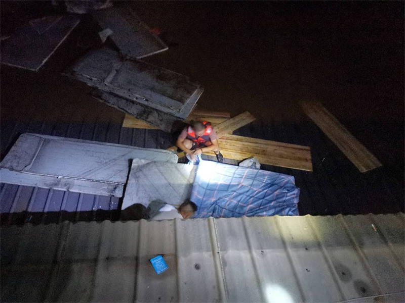 “感謝3名值班人員及時打電話通知我,否則后果不堪設(shè)想!焙喚纯f,回想起昨晚的情形,心里還是有些后怕。當(dāng)時,他接到值班人員電話后,發(fā)現(xiàn)門衛(wèi)室外的洪水已經(jīng)逼近脖子,無法順利撤離,洪水漲勢又快,不一會兒,他只得爬上門衛(wèi)室頂端才能避免被水淹沒。后來,洪水沖來了一棵樹,簡敬奎借助這棵樹慢慢轉(zhuǎn)移到了附近一棵較高大的樹上繼續(xù)躲避,直至黃志和方華軍前來營救。