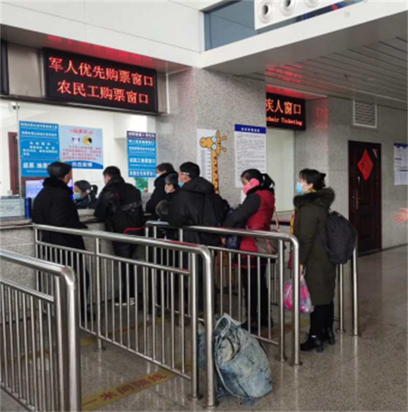 二是設(shè)立專(zhuān)門(mén)購(gòu)票窗口。設(shè)立專(zhuān)門(mén)的農(nóng)民工購(gòu)票窗口,安排車(chē)站工作人員在售票窗口引導(dǎo)和幫助農(nóng)民工朋友使用“微信購(gòu)票”、“自助售票機(jī)購(gòu)票”、“電子客票”等便捷綠色功能購(gòu)票乘車(chē)。
