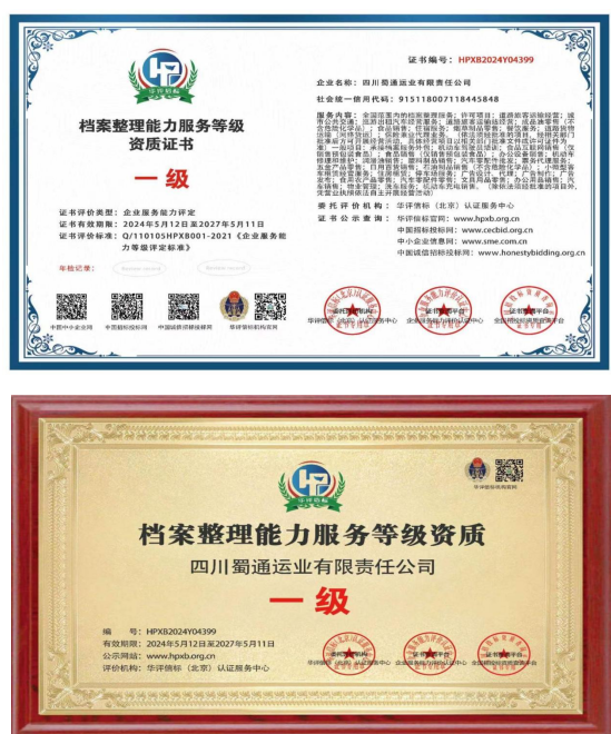 近日,雅安交建集團(tuán)四川蜀通運(yùn)業(yè)有限責(zé)任公司成功取得檔案整理能力服務(wù)等級(jí)一級(jí)資質(zhì)證書,該證書是行業(yè)內(nèi)最高級(jí)別的資質(zhì)認(rèn)證,旨在證明公司在檔案整理、管理、保護(hù)等方面具備卓越的能力和豐富的經(jīng)驗(yàn)。