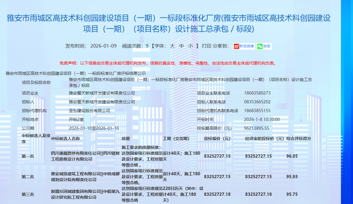 蓄勢突破,奮楫開新?挡芈窐蚬境晒孬@雅安市雨城區(qū)高技術(shù)科創(chuàng)園建設(shè)項目(一期)一標(biāo)段標(biāo)準(zhǔn)化廠房項目,中標(biāo)金額8325.27萬元,為公司2026年發(fā)展強勢開篇,迎來馬年“開門紅”。