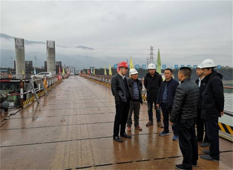 12月3日,市交通運輸局副局長趙飛勇等一行前往成雅快速通道新建項目二標段水津關(guān)特大橋施工現(xiàn)場檢查,并督導(dǎo)項目推進工作。