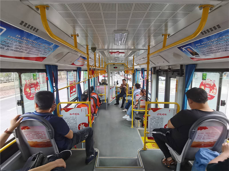 13路公交線路連接雨城區(qū)東西方向,客流量充足,群眾覆蓋范圍廣。雅安交建集團依托車頭、車廂文化,通過圖片、展板等形式,圖文并茂、簡明扼要介紹“五四”精神、“紅船精神”、“井岡山精神”、“強渡大渡河”、“飛奪瀘定橋”、“翻越夾金山”、“延安精神”等紅色主題,成為一道流動的文明風(fēng)景線。乘坐在13路“紅色公交”車上,乘客可了解黨的光輝故事,重溫中國共產(chǎn)黨波瀾壯闊的輝煌歷程,更多的參與到黨史學(xué)習(xí)教育中來,在乘車的短暫時光中學(xué)有所得、學(xué)有所思、學(xué)有所悟。