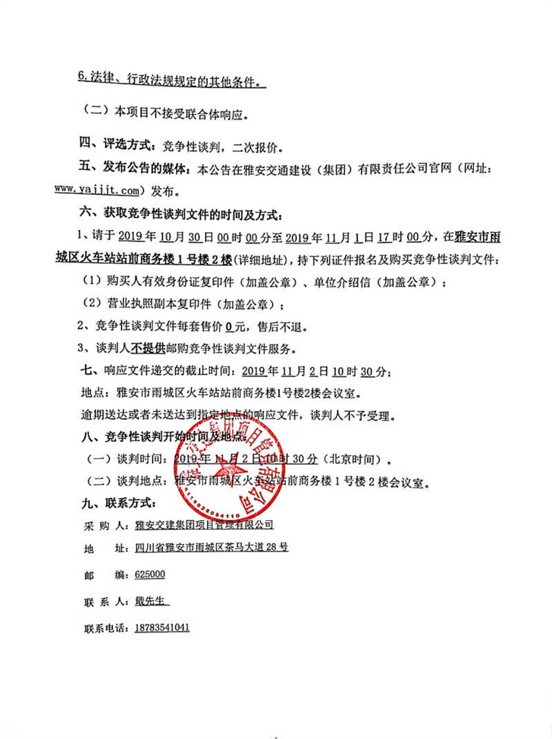 雅安交建集團項目管理有限公司G318線成都界至雨城段新改建項目兩書一案咨詢服務采購項目評標結(jié)果公示