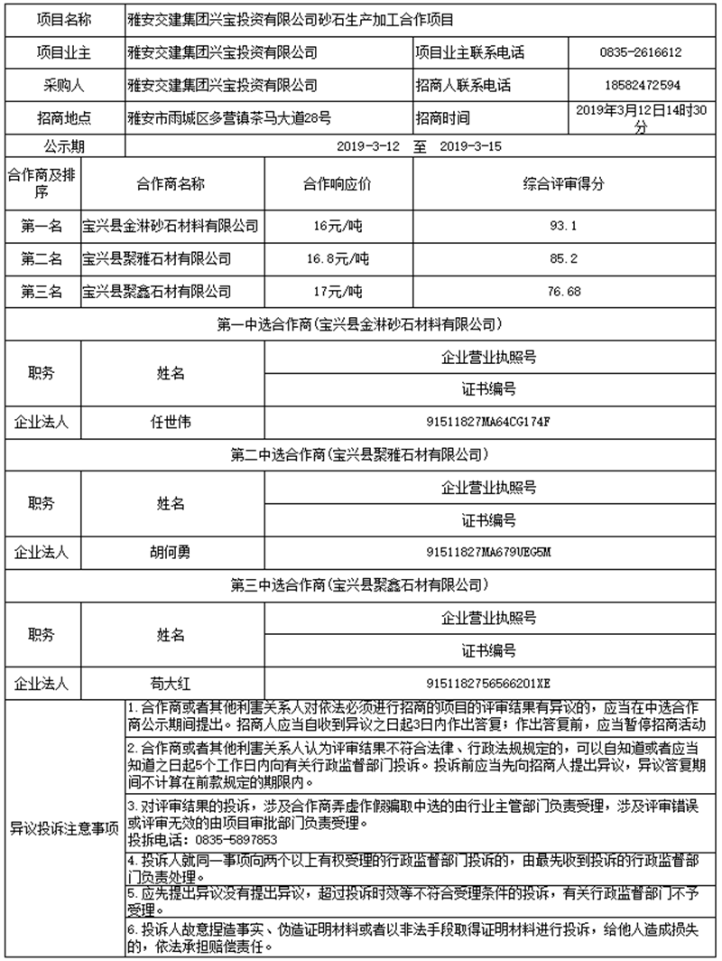 雅安交建集團(tuán)興寶投資有限公司砂石生產(chǎn)加工合作項(xiàng)目公示