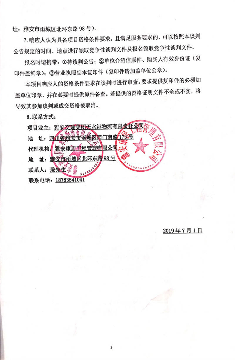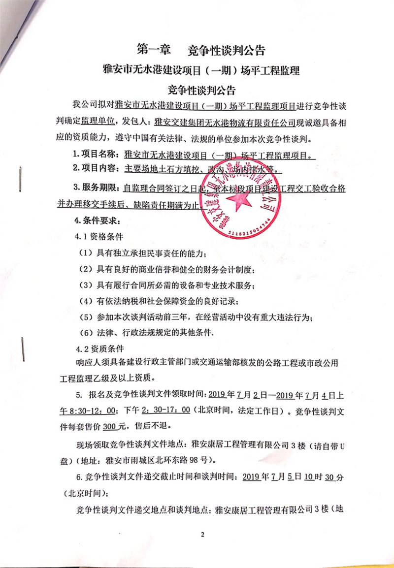 雅安交建集團無水港物流有限責任公司雅安市無水港建設(shè)項目(一期)場平工程監(jiān)理競爭性談判公告