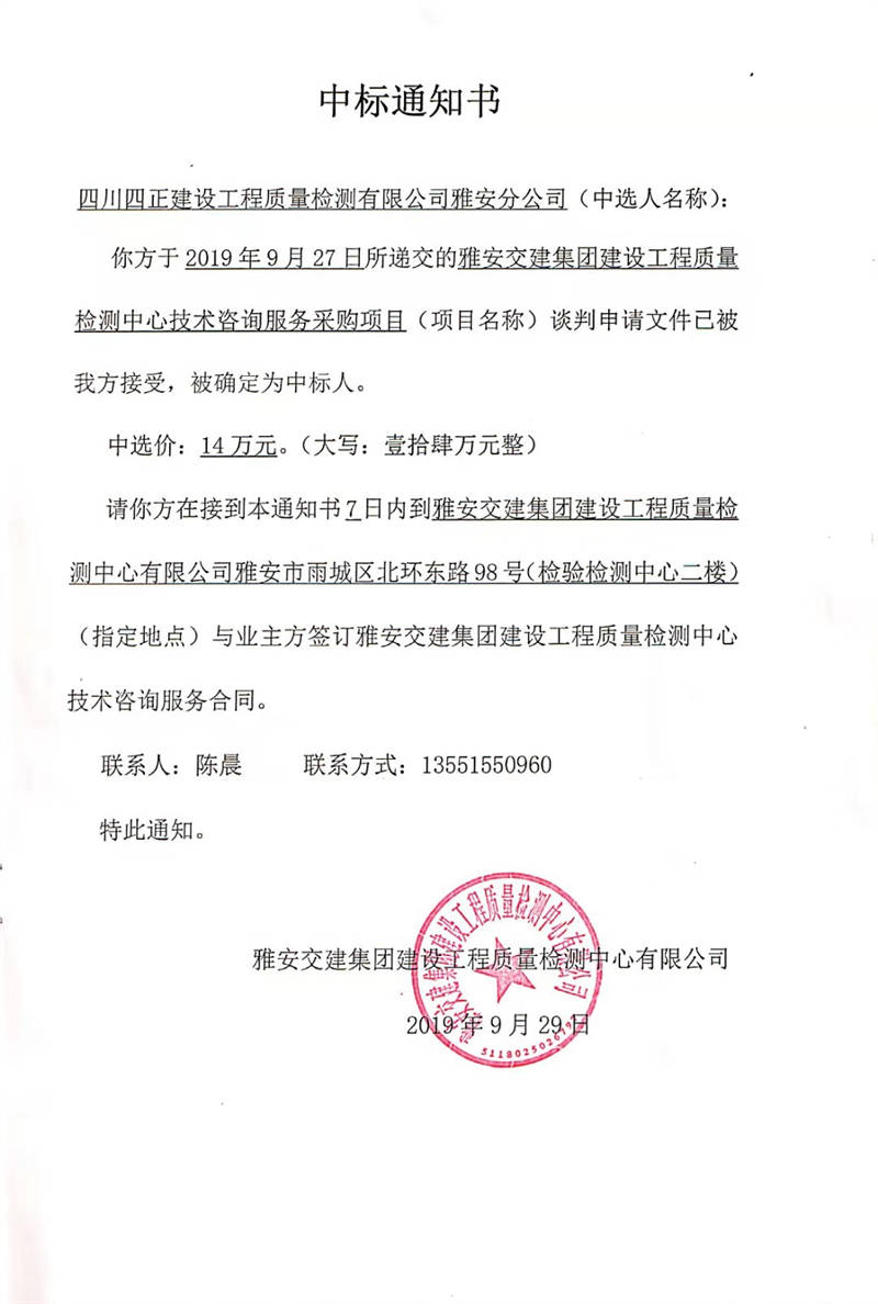 雅安交建集團建設(shè)工程質(zhì)量檢測中心技術(shù)咨詢服務(wù)采購項目中標公示