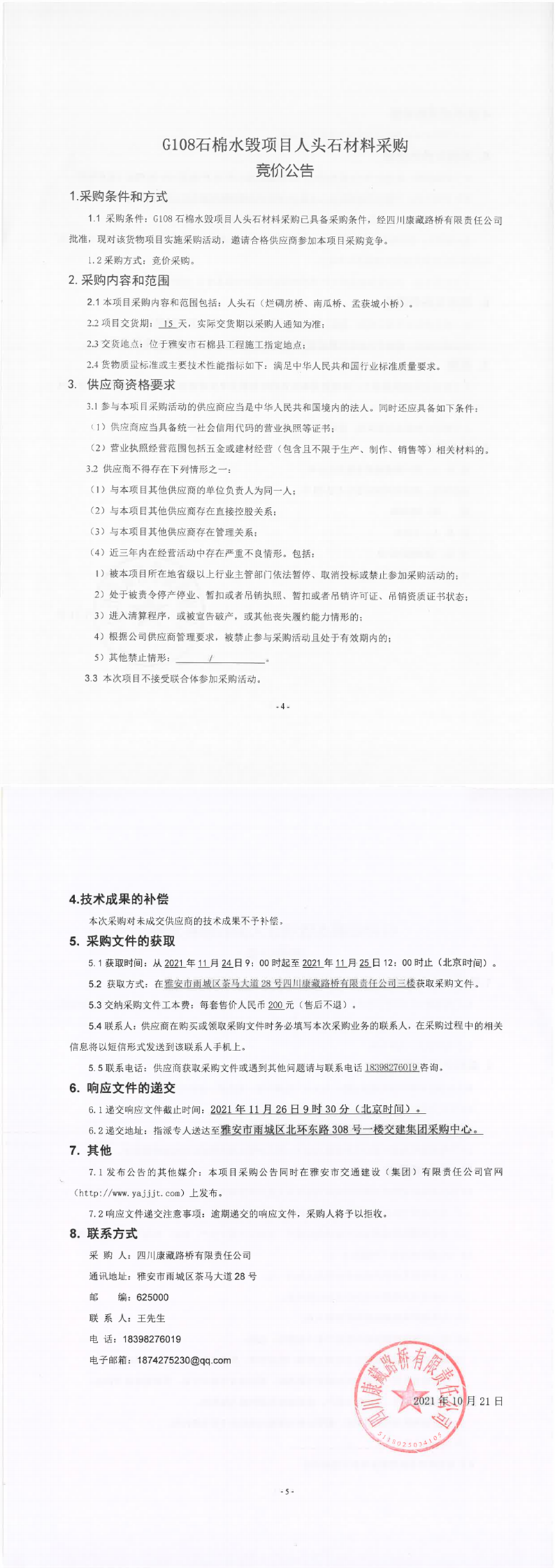 四川康藏路橋有限責(zé)任公司G108石棉水毀項(xiàng)目人頭石材料采購(gòu)競(jìng)價(jià)公告