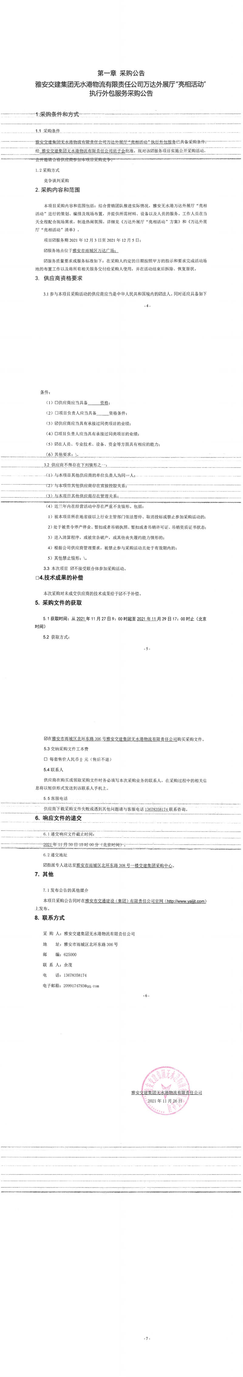 雅安交建集團無水港物流有限責(zé)任公司萬達(dá)外展廳“亮相活動”執(zhí)行外包服務(wù)采購公告