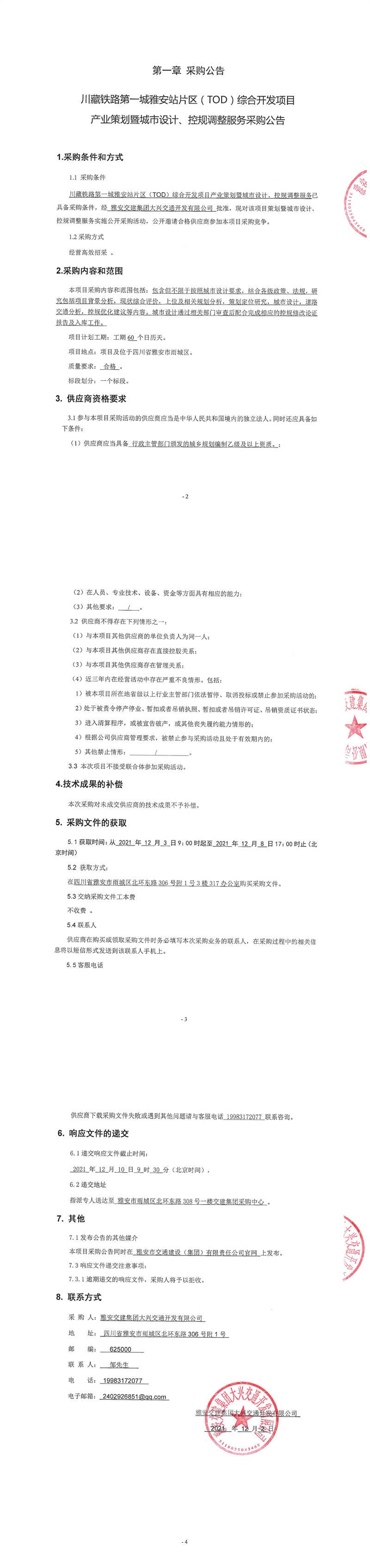 雅安交建集團大興交通開發(fā)有限公司川藏鐵路第一城雅安站片區(qū)(TOD)綜合開發(fā)項目產(chǎn)業(yè)策劃暨城市設(shè)計、控規(guī)調(diào)整服務(wù)采購公告