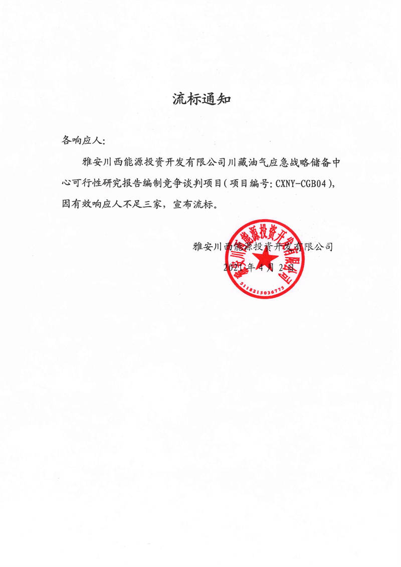 雅安川西能源投資開發(fā)有限公司川藏油氣應(yīng)急戰(zhàn)略儲備中心可行性研究報告編制競爭談判項目流標通知