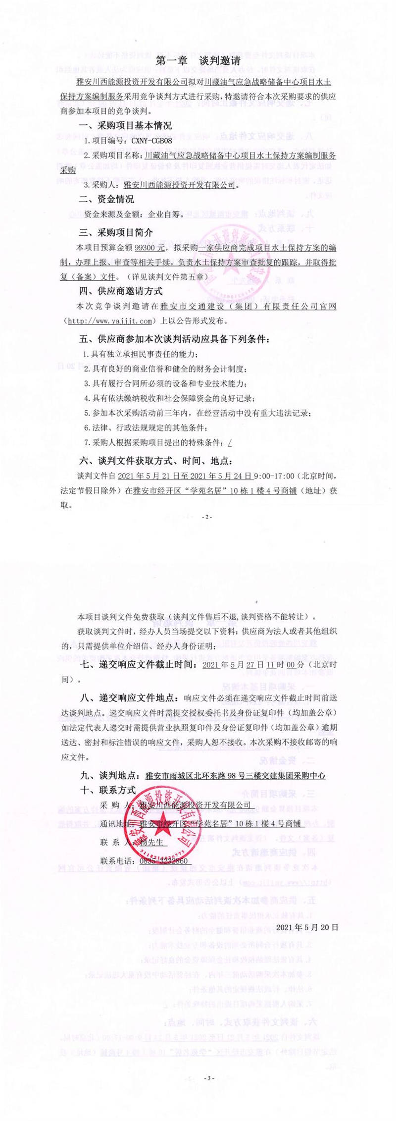 雅安川西能源投資開發(fā)有限公司川藏油氣應(yīng)急戰(zhàn)略儲(chǔ)備中心項(xiàng)目水土保持方案編制服務(wù)采購競爭談判公告