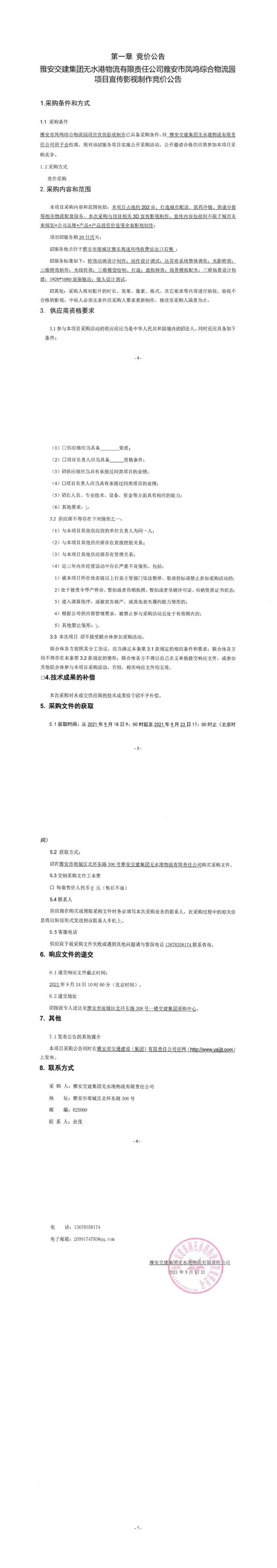 雅安交建集團(tuán)無水港物流有限責(zé)任公司雅安市鳳鳴綜合物流園項(xiàng)目宣傳影視制作競(jìng)價(jià)公告