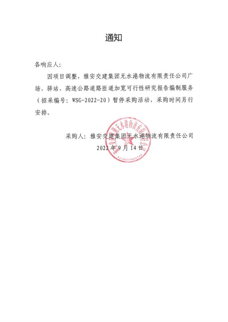雅安交建集團(tuán)無水港物流有限責(zé)任公司廣場(chǎng)、驛站、高速公路道路匝道加寬可行性研究報(bào)告編制服務(wù)采購?fù)ㄖ?/h1>