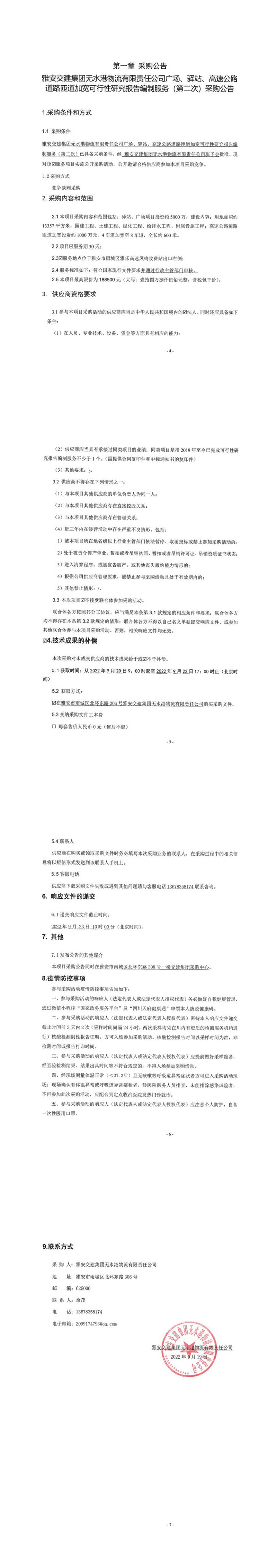 雅安交建集團(tuán)無水港物流有限責(zé)任公司廣場(chǎng)、驛站、高速公路道路匝道加寬可行性研究報(bào)告編制服務(wù)(第二次)采購公告