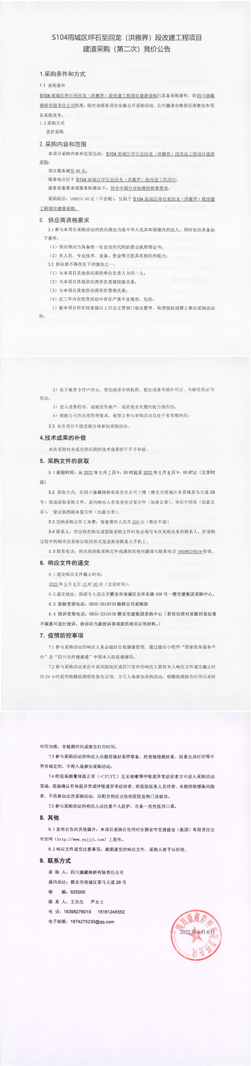 四川康藏路橋有限責(zé)任公司S104雨城區(qū)坪石至回龍(洪雅界)段改建工程項(xiàng)目建渣采購(第二次)競價(jià)公告