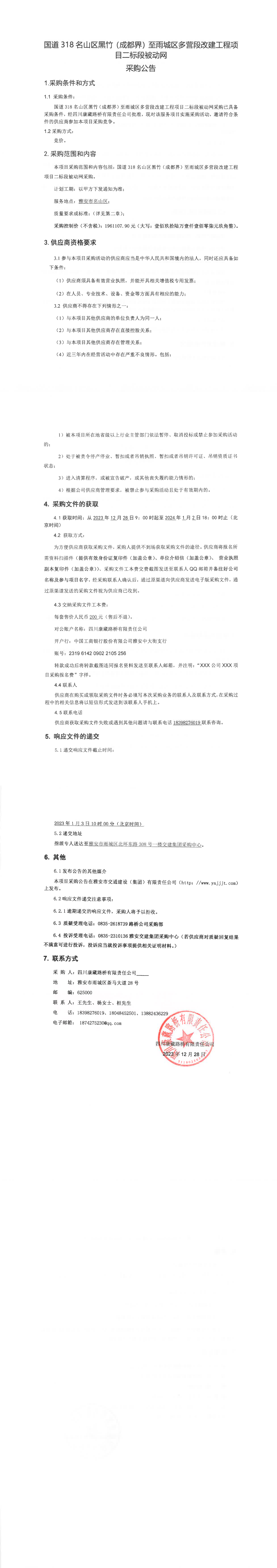 四川康藏路橋有限責(zé)任公司國道318名山區(qū)黑竹(成都界)至雨城區(qū)多營段改建工程項(xiàng)目二標(biāo)段被動(dòng)網(wǎng)采購公告