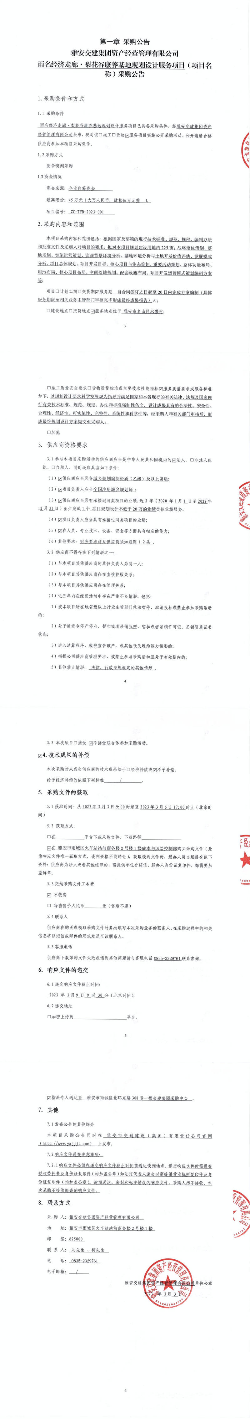 雅安交建集團(tuán)資產(chǎn)經(jīng)營(yíng)管理有限公司雨名經(jīng)濟(jì)走廊·梨花谷康養(yǎng)基地規(guī)劃設(shè)計(jì)服務(wù)項(xiàng)目(項(xiàng)目名稱(chēng))采購(gòu)公告