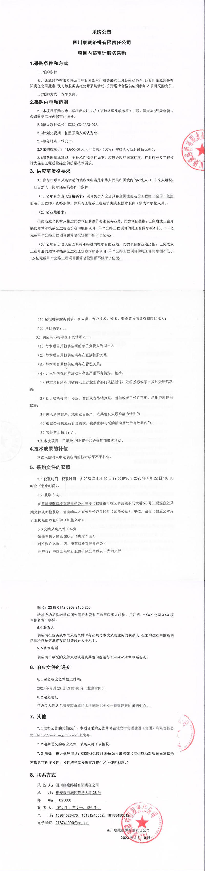 四川康藏路橋有限責(zé)任公司項(xiàng)目內(nèi)部審計服務(wù)采購公告