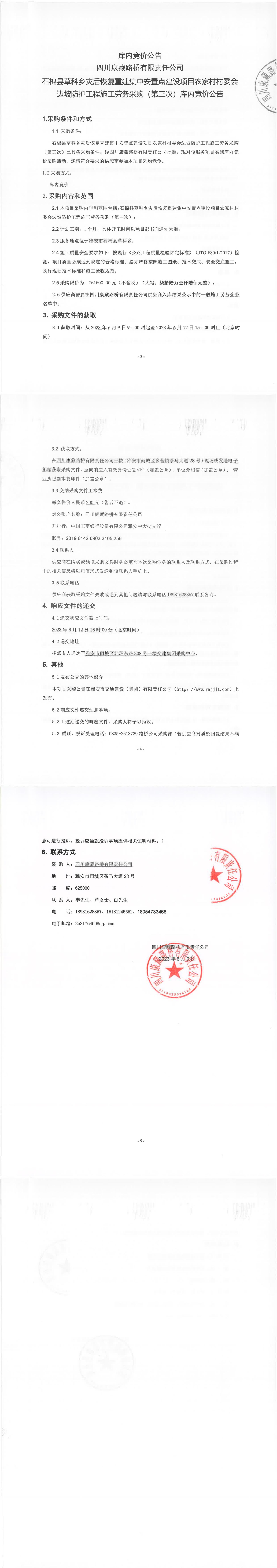 四川康藏路橋有限責(zé)任公司石棉縣草科鄉(xiāng)災(zāi)后恢復(fù)重建集中安置點(diǎn)建設(shè)項(xiàng)目農(nóng)家村村委會(huì)邊坡防護(hù)工程施工勞務(wù)采購(第三次)庫內(nèi)競(jìng)價(jià)公告