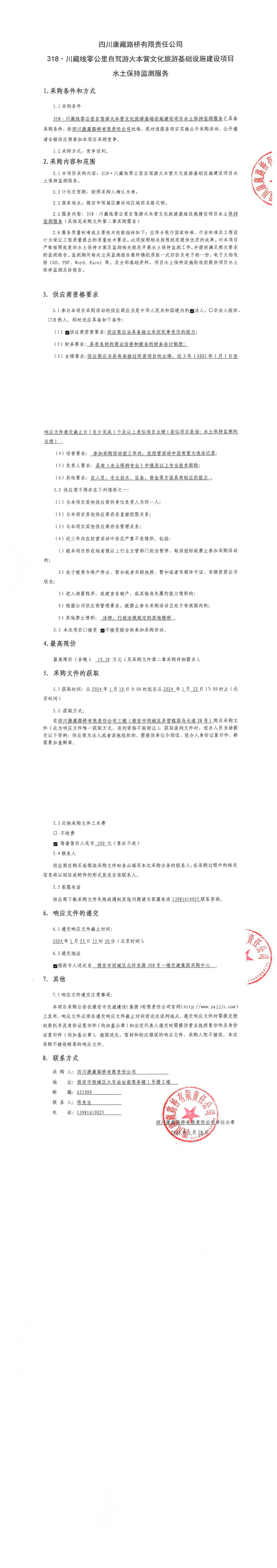 四川康藏路橋有限責任公司318·川藏線零公里自駕游大本營文化旅游基礎(chǔ)設(shè)施建設(shè)項目水土保持監(jiān)測服務(wù)采購公告